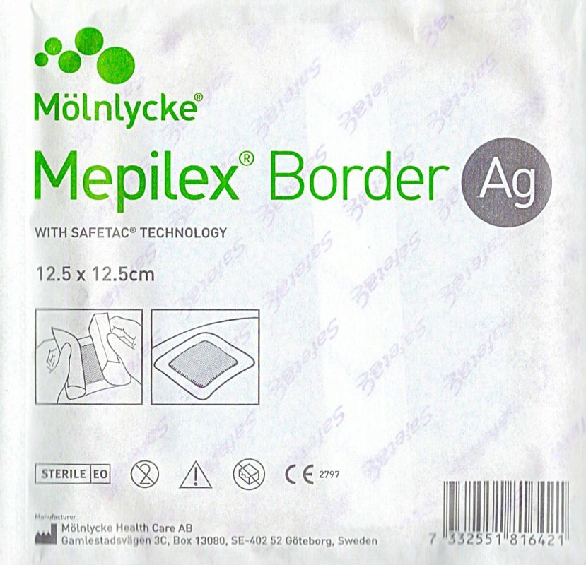 OpisMepilex Border Ag to antybakteryjny opatrunek piankowy o wymiarach 12,5 cm x 12,5 cm, zawieraj膮cy srebro, kt贸re dzia艂a antybakteryjnie. Dzi臋ki swojej wszechstronnej konstrukcji, jest idealny do leczenia ostrych i przewlek艂ych ran o 艣rednim i du偶ym wysi臋ku, takich jak owrzodzenia, rany nowotworowe, odle偶yny, oparzenia, a tak偶e rany pooperacyjne i urazowe.