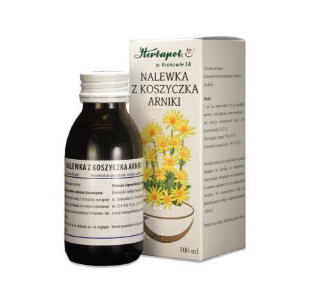 OpisNalewka z koszyczka arniki jest naturalnym leczniczym produktem roślinnym, zalecanym do stosowania w postaci okładów po rozcieńczeniu w przypadku stłuczeń, skręceń, siniaków, obrzęków oraz zapalenia żył. Może być również używana do płukania ust przy stanach zapalnych dziąseł i aftach, jak również po ukąszeniu owadów.