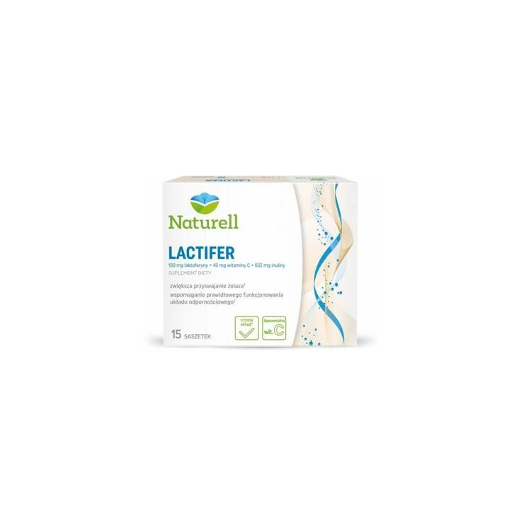 OpisNaturell Lactifer Saszetki to suplement diety zawierający laktoferynę oraz liposomalną witaminę C, wzbogacony dodatkowo o inulinę. Produkt ten został stworzony jako uzupełnienie codziennej diety osób dorosłych i dzieci, szczególnie w okresie jesienno-zimowym i w czasie przesilenia wiosennego. Jest także idealnym uzupełnieniem dla osób, które stosują preparaty żelaza.