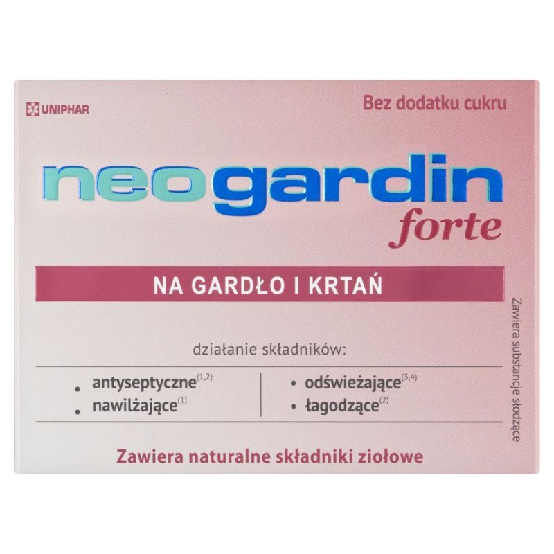 OpisNeogardin Forte Uniphar to unikalny suplement diety zawieraj膮cy a偶 9 aktywnych sk艂adnik贸w. Formu艂a w tabletkach do ssania jest idealnym uzupe艂nieniem diety dla doros艂ych, szczeg贸lnie w okresie jesienno-zimowym i podczas przesilenia wiosennego.
