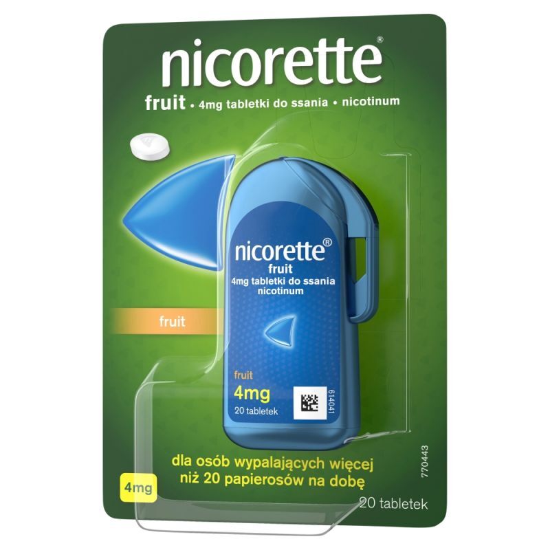 OpisNicorette Fruit to lek w formie tabletek do ssania, przeznaczony dla os贸b, kt贸re pal膮 wi臋cej ni偶 20 papieros贸w dziennie.