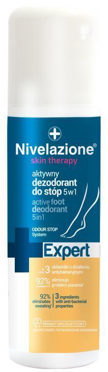 Preparat do pielęgnacji stóp z linii NIVELAZIONE Skin Therapy to nowoczesny produkt, który wykorzystuje ODOUR STOP System do neutralizacji nieprzyjemnego zapachu poprzez zastępowanie go pożądanym zapachem. Dzięki temu zapewnia długotrwały efekt świeżości i skutecznie chroni przed nieprzyjemnym zapachem potu. Bogata formuła produktu, oparta na starannie dobranych składnikach aktywnych, zapewnia holistyczne działanie, pomagając w utrzymaniu odpowiedniej higieny i pielęgnacji skóry stóp na co dzień, jednocześnie niwelując problemy skórne.