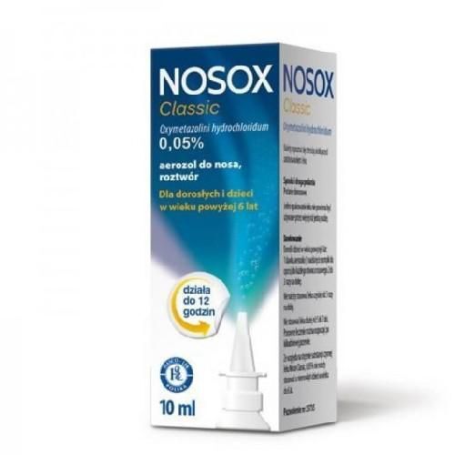 Nosox Classic 0,05% jest stosowany w leczeniu obrz臋ku b艂on 艣luzowych, wyst臋puj膮cego przy ostrym zapaleniu b艂ony 艣luzowej nosa, naczynioruchowym zapaleniu b艂ony 艣luzowej nosa, zapaleniu zatok przynosowych, alergicznym zapaleniu b艂ony 艣luzowej nosa, zapaleniu ucha 艣rodkowego oraz zapaleniu tr膮bki s艂uchowej.