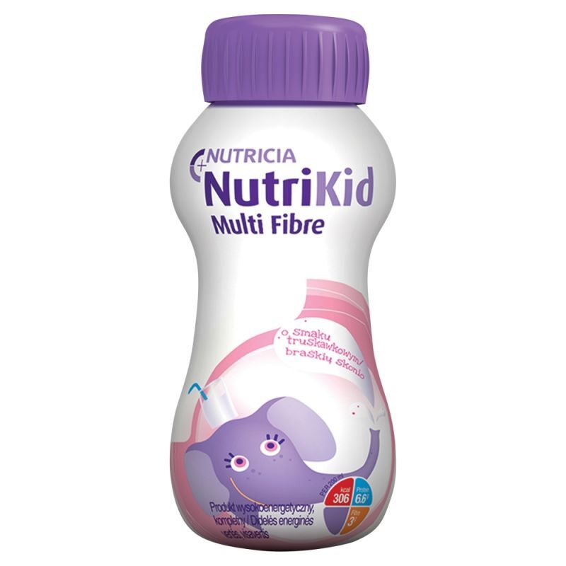 OpisNutriKid Multi Fibre o smaku truskawkowym to specjalna 偶ywno艣膰 medyczna przeznaczona dla dzieci powy偶ej 1. roku 偶ycia. Jest to wyj膮tkowa, od偶ywcza kompozycja wspieraj膮ca dzieci podczas choroby i rekonwalescencji. Produkt jest wysokoenergetyczn膮, p艂ynn膮 diet膮 wzbogacon膮 w b艂onnik, gotow膮 do spo偶ycia. Nie zawiera glutenu ani laktozy.