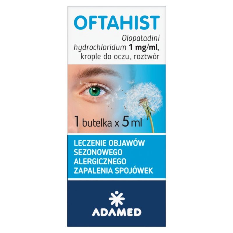 OpisOftahist 1 mg/ml to lek dost臋pny bez recepty, stosowany w leczeniu alergicznych chor贸b oczu. Przeznaczony jest dla doros艂ych pacjent贸w z alergicznym zapaleniem spoj贸wek, kt贸re objawia si臋 sw臋dzeniem, 艂zawieniem, zaczerwienieniem oraz obrz臋kiem powierzchni oka.