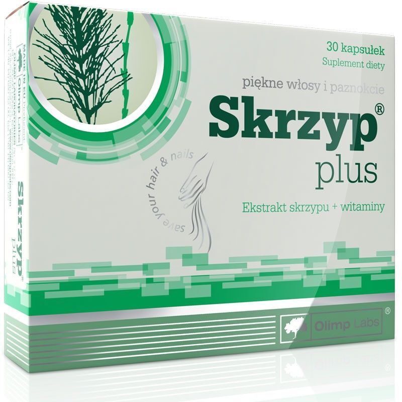 OpisOlimp Skrzyp Plus to suplement diety w formie kapsułek, który dostarcza bioaktywne składniki skrzypu polnego oraz wybrane witaminy. Preparat zawiera ekstrakt z polnej odmiany skrzypu, będącej naturalnym źródłem związków krzemowych, oraz 12 witamin, uzupełniając codzienną dietę.
