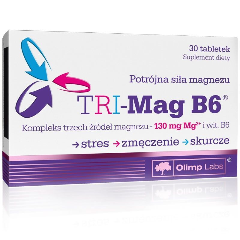 SkładnikiKompleks mineralny Tri-Mag B6 (węglan magnezu, mleczan magnezu, jabłczan magnezu), substancja wypełniająca - celuloza mikrokrystaliczna, substancje przeciwzbrylające - sole magnezowe kwasów tłuszczowych, dwutlenek krzemu, substancja wypełniająca - sól sodowa karboksymetylocelulozy usieciowana; chlorowodorek pirydoksyny – wit. B6.