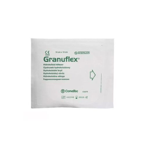 Sposób użyciaOpatrunek Granuflex nakłada się na rany zdezynfekowane roztworem dowolnej substancji, nie opisano interakcji między znanymi środkami dezynfekującymi a aktywnym hydrokoloidem. Opatrunek nakładać na powierzchnie osuszone uprzednio jałową gazą. Musi on zajmować margines skóry nieuszkodzonej (około 2–3 cm). Opatrunek hydrokoloidowy należy zmienić, gdy zaczynają się spod niego wydobywać nadmierne ilości wysięku, uniemożliwiające prawidłowe funkcjonowanie i higienę pacjenta. W zależności od stopnia wilgotności rany następuje to zwykle między 2 a 6 dniem od momentu założenia opatrunku na ranę. Opatrunki hydrokoloidowe można łatwo przycinać, by dostosować je do kształtu, wielkości i lokalizacji rany. Warstwa wewnętrzna opatrunku jest samoprzylepna, nie wymaga więc on dodatkowego mocowania na ranie.