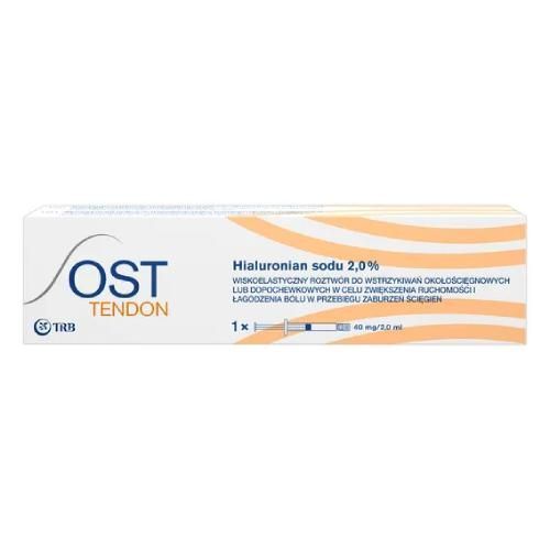 OpisOST Tendon to roztwór wiskoelastyczny w postaci wyrobu medycznego przeznaczony do iniekcji okołościęgnowych oraz do pochewki ścięgna. Ampułka zawiera 2 ml roztworu z 40 mg hialuronianu sodowego.