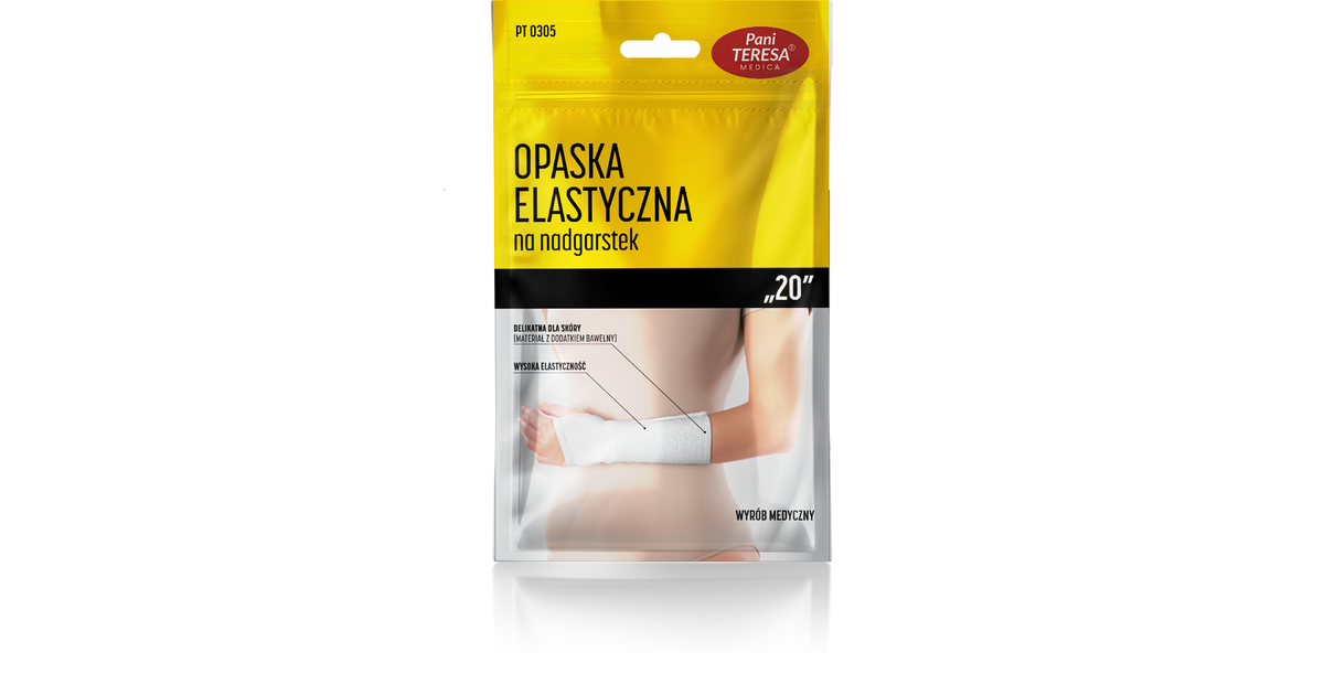 OpisOpaska elastyczna na nadgarstek „20” Pani Teresa to wyrób medyczny odpowiedni do wielokrotnego użycia przeznaczony do wspomagania procesu leczenia oraz rehabilitacji. Może być stosowana profilaktycznie, jak również po urazie i operacji, oraz w przypadku przewlekłych zmian zwyrodnieniowych stawu nadgarstkowego. Pomaga w łagodzeniu dolegliwości bólowych, przekrwienia i upośledzenia funkcji ręki, zapobiega i zwalcza pourazowe obrzęki nadgarstka. Stosowana jako opatrunek po zdjęciu gipsu - wykazuje działanie przeciwbólowe, w szczególności w okresie rehabilitacji. Opaska jest wysoce elastyczna. Wykonana została z delikatnych dla skóry materiałów z dodatkiem bawełny. Aby wybrać właściwy rozmiar, należy zmierzyć obwód ręki w nadgarstku.