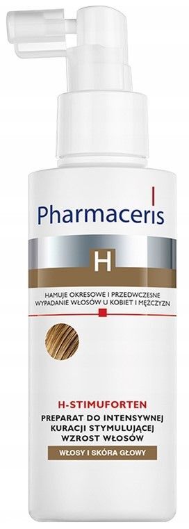 StosowanieW przypadku nasilonego wypadania włosów, preparat H-Stimuforten, Pharmaceris H aplikować codziennie rano i wieczorem na wilgotne lub suche włosy, podzielone grzebieniem na przedziałki. Każdy przedziałek spryskać trzykrotnie, naciskając na atomizer. Zastosować na całą skórę głowy (od 15 do 18 dozowań), następnie delikatnie wmasować w powierzchnię głowy. Nie spłukiwać. Kurację stosować do ustąpienia objawów. W celu zwiększenia efektywności kuracji preparat należy stosować, włączając do codziennej pielęgnacji szampon i odżywkę z serii Pharmaceris H o działaniu stymulującym wzrost włosów. Profilaktycznie stosować preparat kilka razy w tygodniu wieczorem.