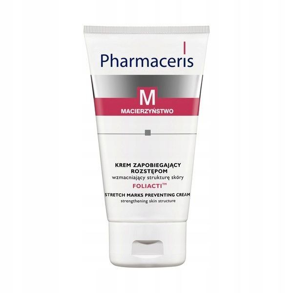 OpisPharmaceris M Foliacti to krem opracowany w celu przeciwdziałania powstawaniu rozstępów oraz wzmocnienia struktury skóry. Przeznaczony do pielęgnacji skóry narażonej na intensywne rozciąganie, np. w czasie ciąży (od 4. miesiąca) lub przy szybkim przybieraniu na wadze, np. podczas okresu dojrzewania. Działa uelastyczniająco, poprawiając odporność skóry na rozciąganie, co pomaga w utrzymaniu jej jędrności i zdrowego wyglądu. Bezpieczny także dla kobiet karmiących.