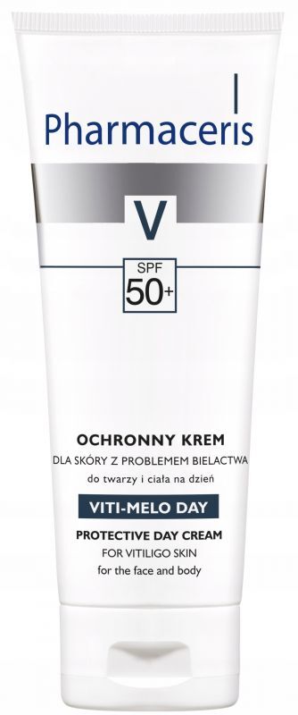 OpisPharmaceris V Viti-Melo Day SPF 50+ to ochronny krem przeznaczony do piel臋gnacji sk贸ry z problemem bielactwa. Zapewnia wysok膮 ochron臋 przeciws艂oneczn膮, minimalizuj膮c ryzyko poparze艅 oraz ograniczaj膮c rozszerzanie si臋 obszar贸w odbarwie艅, wspieraj膮c zdrowy wygl膮d sk贸ry.