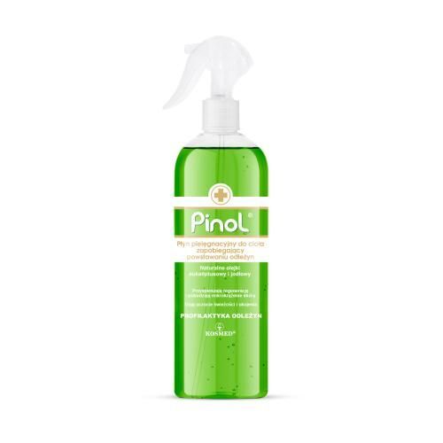 - Dzięki zawartości naturalnych olejków preparat Pinol działa łagodząco i kojąco, nawilża i uelastycznia skórę. Ich naturalny zapach działa kojąco i relaksująco.