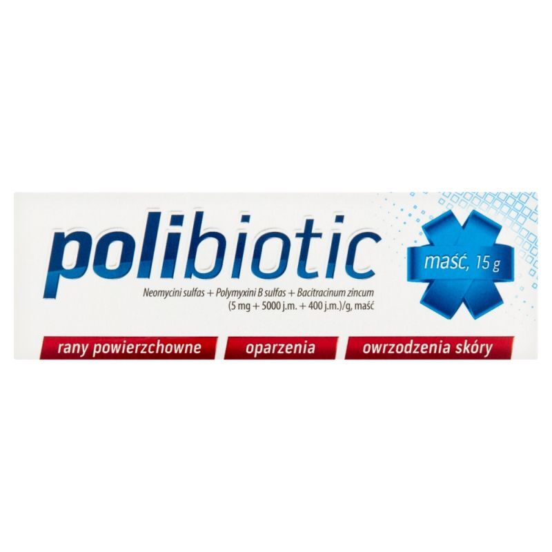 OpisMa艣膰 Polibiotic jest lekiem przeznaczonym do miejscowego stosowania na sk贸r臋. Zaleca si臋 jej u偶ywanie w przypadku drobnych obra偶e艅, takich jak otarcia, zadrapania, uk膮szenia, a tak偶e przy oparzeniach i owrzodzeniach sk贸ry. Sk艂ad ma艣ci Polibiotic obejmuje trzy substancje czynne o charakterze antybiotyk贸w: neomycyn臋, polimyksyn臋 B i bacytracyn臋. Te sk艂adniki dzia艂aj膮 synergistycznie, co sprawia, 偶e lek posiada kompleksowy zakres dzia艂ania przeciwbakteryjnego, skierowanego przeciwko bakteriom odpowiedzialnym za wi臋kszo艣膰 infekcji sk贸rnych.
