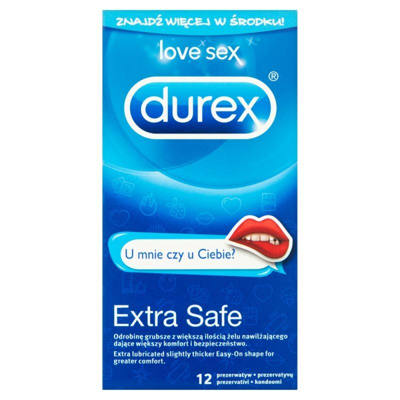 OpisPrezerwatywy Durex Extra Safe U mnie czy u Ciebie? to przezroczyste, odrobinę grubsze prezerwatywy z naturalnej gumy lateksowej, o ksztalcie Easy-On, zakończone zbiorniczkiem. Posiadają większą ilość żelu nawilżającego dla jeszcze większego komfortu.