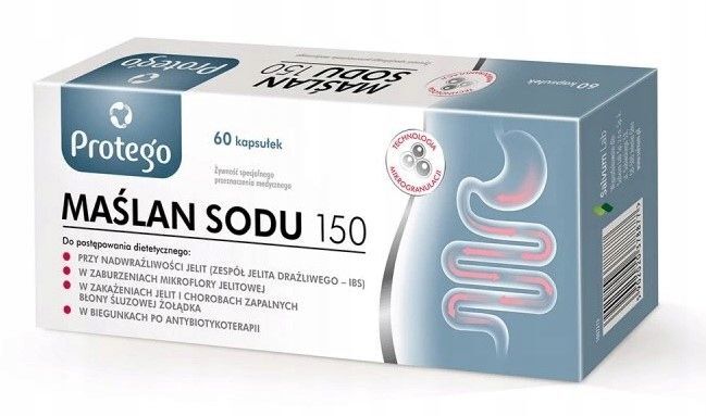 OpisProtego Maślan sodu 150 to środek spożywczy o specjalnym przeznaczeniu medycznym, zawierający 150 mg maślanu sodu, w tym 120 mg kwasu masłowego. Przeznaczony jest do stosowania w diecie osób z zespołem jelita drażliwego (IBS), zaburzeniami równowagi mikroflory jelitowej, infekcjami jelitowymi oraz stanami zapalnymi błony śluzowej jelit i żołądka, takimi jak wrzodziejące zapalenie jelita grubego czy choroba Leśniowskiego-Crohna. Może być również pomocny w przypadku biegunek wywołanych antybiotykoterapią.