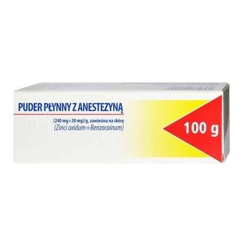 DziałaniePuder płynny z anestezyną wykazuje działanie przeciwświądowe (zmniejsza świąd w zmianach skórnych, którym towarzyszy swędzenie; anestezyna wykazuje działanie znieczulające - łagodzi ból) oraz działanie ściągające i wysuszające (ze względu na obecność tlenku cynku). Puder wykazuje również właściwości chłodzące.