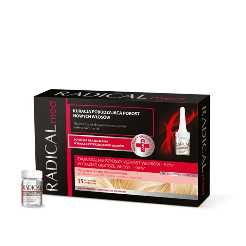WłaściwościKuracja w ampułkach stymulująca porost włosów Radical Med