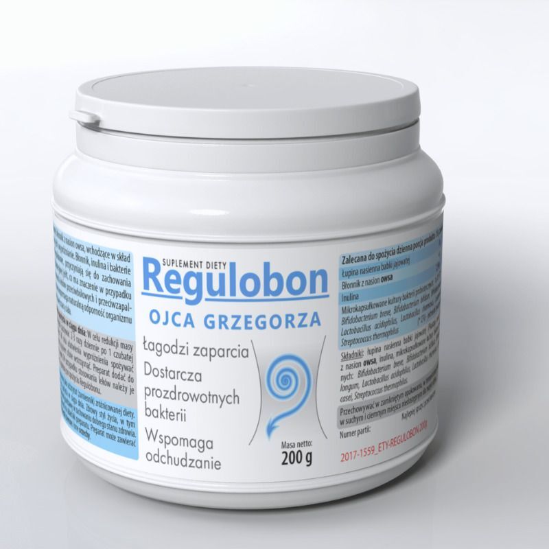 - Suplement diety Regulobon Ojca Grzegorza w proszku, 200 g nie mo偶e by膰 stosowany jako substytut (zamiennik) zr贸偶nicowanej diety.