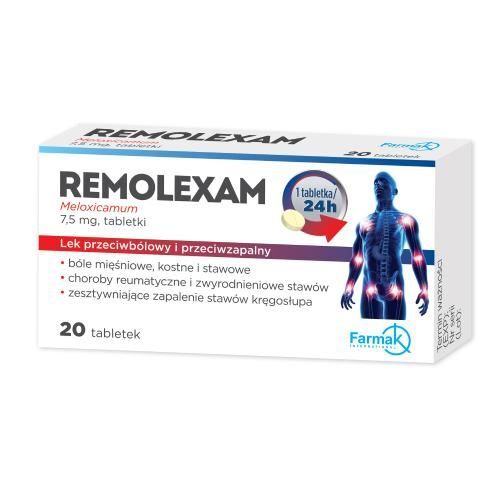 DziałanieLek Remolexam zawiera substancję czynną meloksykam. Meloksykam należy do grupy leków zwanej niesteroidowymi lekami przeciwzapalnymi (NLPZ). Meloksykam jest stosowany w celu zmniejszenia stanu zapalnego i bólu stawów oraz mięśni.