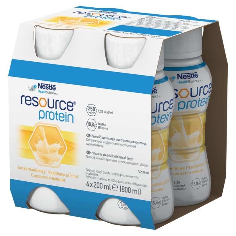 W艂a艣ciwo艣ciResource Protein pozwala zwi臋kszy膰 ilo艣膰 bia艂ka i energii w diecie, jedno opakowanie produktu dostarcza 18,8 g bia艂ka oraz 250 kcal. 呕ywno艣膰 specjalistycznego przeznaczenia medycznego odpowiednia dla os贸b niedo偶ywionych lub zagro偶onych niedo偶ywieniem, kt贸re maj膮 zwi臋kszone zapotrzebowanie na bia艂ko. Sprawdzi si臋 r贸wnie偶 w przypadku chor贸b nowotworowych, w okresie oko艂ooperacyjnym, rekonwalescencji lub dla os贸b w podesz艂ym wieku. Produkt mo偶e stanowi膰 uzupe艂nienie diety lub by膰 jedynym 藕r贸d艂em po偶ywienia (koniecznie pod kontrol膮 lekarza).