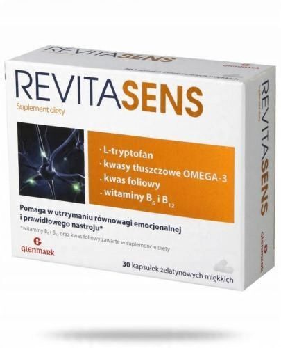 OpisRevitasens to suplement diety opracowany z myślą o dorosłych, którzy chcą wspierać równowagę emocjonalną i dobry nastrój. Zawiera starannie dobraną kompozycję składników aktywnych, takich jak omega-3 (EPA i DHA), L-tryptofan, witamina B6, witamina B12 oraz kwas foliowy, które wspomagają funkcjonowanie układu nerwowego i psychicznego.
