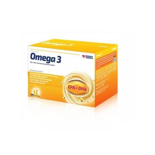 OpisRodzina Zdrowia Omega 3 to suplement diety zawieraj膮cy kwasy t艂uszczowe omega-3, w tym g艂贸wnie EPA i DHA, przeznaczony dla os贸b doros艂ych.