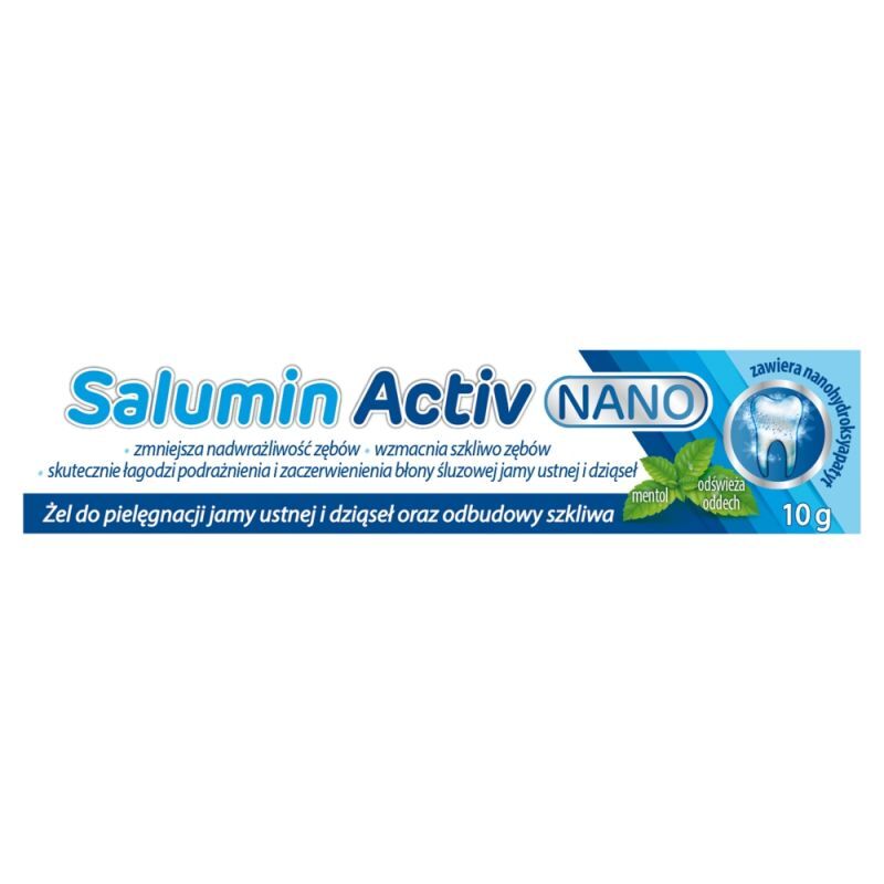 WłaściwościŻel do pielęgnacji jamy ustnej, dziąseł i odbudowy szkliwa, Salumin Activ Nano: