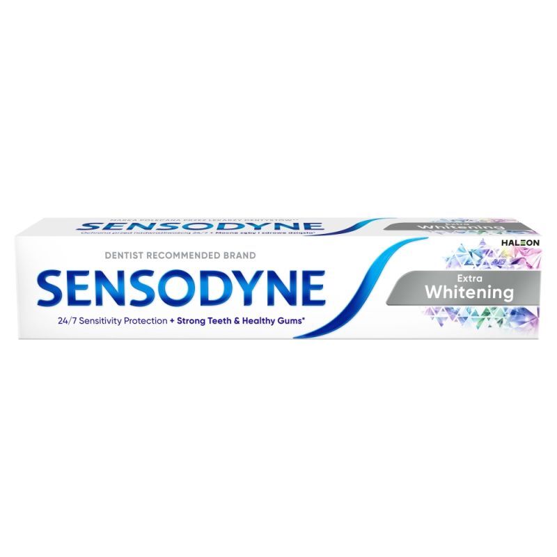 OpisSensodyne Extra Whitening to pasta do zębów z fluorkiem, która efektywnie czyści zęby, usuwa płytkę nazębną i chroni przed próchnicą. Pomaga także w usuwaniu przebarwień, przywracając naturalną biel zębów.
