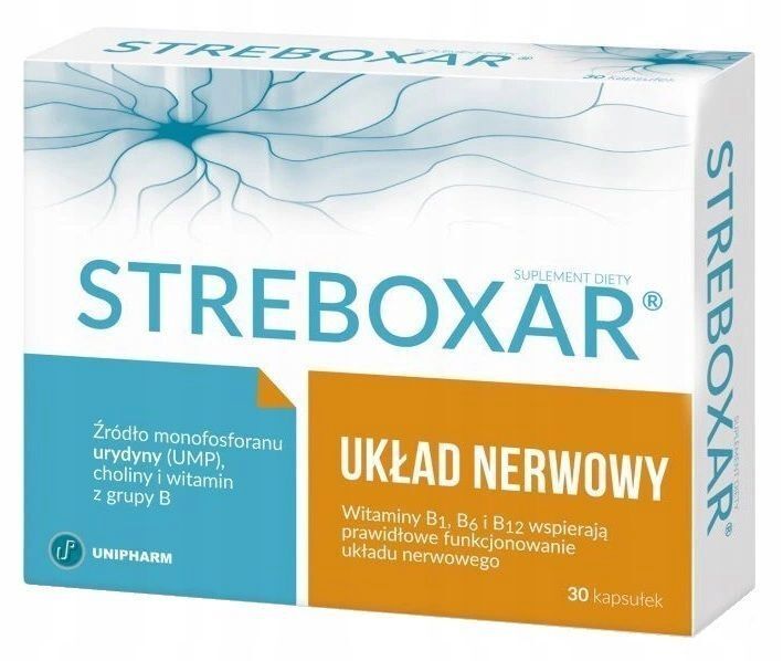 OpisStreboxar to kapsułkowy suplement diety dedykowany osobom dorosłym, zawierający zestaw składników wspierających prawidłowe funkcjonowanie układu nerwowego – zarówno ośrodkowego, jak i obwodowego. Pomaga utrzymać równowagę nerwową i wspiera ogólne samopoczucie psychiczne.
