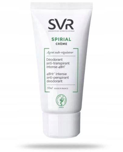 OpisSVR Spirial Creme to kremowy antyperspirant odpowiedni do codziennego stosowania, przeznaczony dla ka偶dego typu sk贸ry. Gwarantuje skuteczn膮 ochron臋 przed potem przez 48 godzin, zapewniaj膮c uczucie 艣wie偶o艣ci i komfortu przez ca艂y dzie艅.