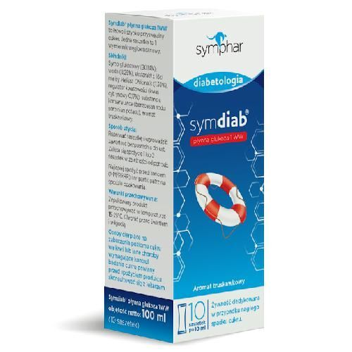 Symphar Symdiab P艂ynna Glukoza, dost臋pna w 10 saszetkach z linii Symphar Diabetologia, to 艂atwo i szybko przyswajalny cukier prosty. Ka偶da saszetka zawiera ilo艣膰 glukozy odpowiadaj膮c膮 1 wymiennikowi w臋glowodanowemu (1 WW), co jest r贸wnowa偶ne 10 g przyswajalnych w臋glowodan贸w (bez b艂onnika).
