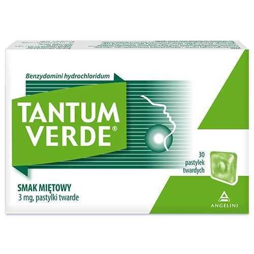 OpisTantum Verde 3 mg to lek w formie pastylek do ssania o smaku miętowym, stosowany w celu łagodzenia bólu, zaczerwienienia i obrzęku spowodowanych stanem zapalnym jamy ustnej i gardła. Jest przeznaczony dla dorosłych oraz dzieci powyżej 6. roku życia.