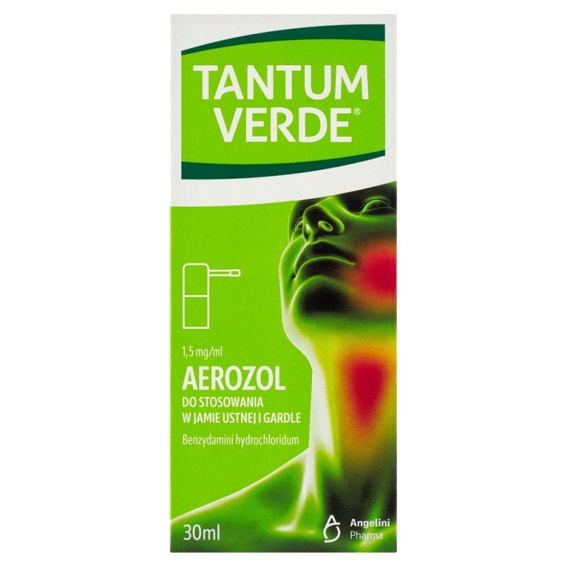 WskazaniaTantum Verde aerozol 30 ml stosuje si臋 w leczeniu objaw贸w (b贸lu, zaczerwienienia, obrz臋ku) zwi膮zanych ze stanem zapalnym jamy ustnej i gard艂a w: