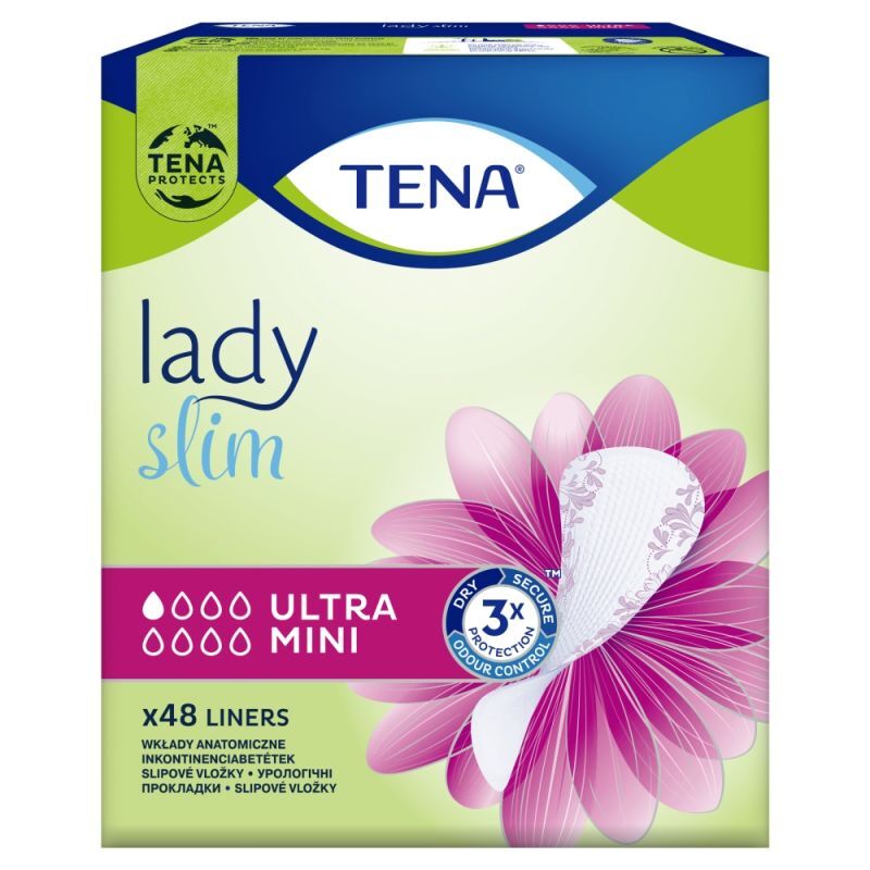 TENA Lady Slim Ultra Mini to wkładki higieniczne, które oferują dyskretną ochronę przy kropelkowym nietrzymaniu moczu. Choć mają wygląd tradycyjnych wkładek, wyróżniają się znacznie lepszą chłonnością. Są łagodne dla skóry i nie zawierają sztucznych substancji zapachowych.