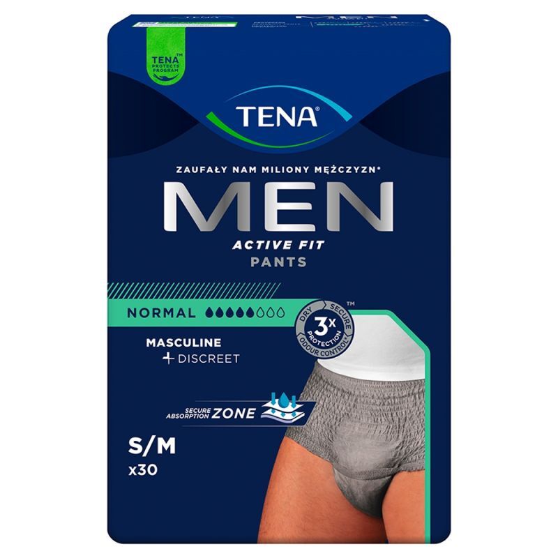 OpisTena Men Pants to wyr贸b medyczny w formie ch艂onnej bielizny, zaprojektowany dla m臋偶czyzn, kt贸rzy prowadz膮 aktywny tryb 偶ycia i borykaj膮 si臋 z umiarkowanym lub ci臋偶kim nietrzymaniem moczu.