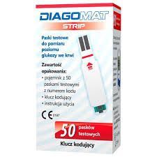 WskazaniaWyr贸b medyczny Paski testowe Diagomat Strip przeznaczone do ilo艣ciowego oznaczania glukozy (cukru) we krwi pobranej drog膮 nak艂ucia opuszka palca, d艂oni lub przedramienia w warunkach domowych oraz w plac贸wkach medycznyc