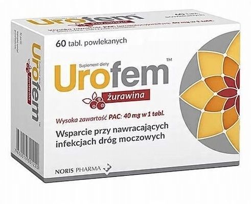 OpisUROFEM Żurawina to suplement diety przeznaczony dla osób dorosłych, które zmagają się z nawracającymi zakażeniami układu moczowego. Zawiera wysokie stężenie proantocyjanidyn (PAC) – aż 40 mg w jednej tabletce – znanych ze swojego korzystnego wpływu na zdrowie dróg moczowych.