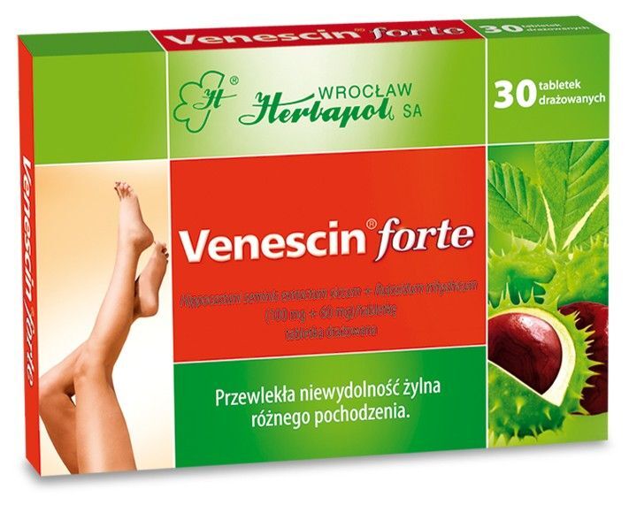 WskazaniaVenescin Forte stosuje się w przewlekłej niewydolności żylnej różnego pochodzenia objawiającej się obrzękami, kurczami łydek, świądem, bólem i uczuciem ciężkości w nogach, pod kontrolą lekarza w żylakach.