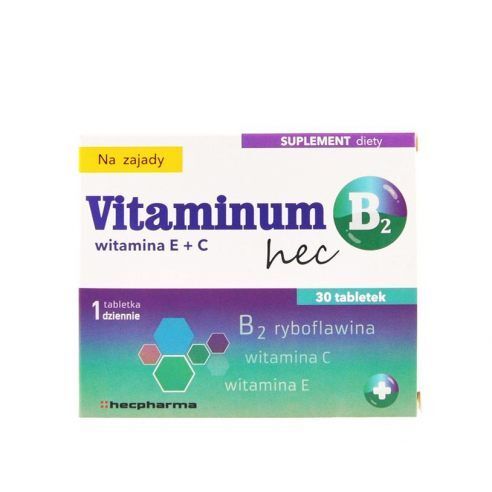 OpisVitaminum B2 Hec to suplement diety, kt贸ry 艂膮czy wysok膮 zawarto艣膰 ryboflawiny z witaminami C i E. Tabletki te s膮 idealnym dodatkiem do codziennej diety doros艂ych, dostarczaj膮c wa偶ne sk艂adniki wspieraj膮ce zdrowie organizmu.