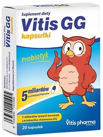 OpisVitis GG Nowa Formuła to suplement diety, który dostarcza 5 miliardów żywych komórek bakterii w każdej kapsułce. Jest przeznaczony dla dorosłych.