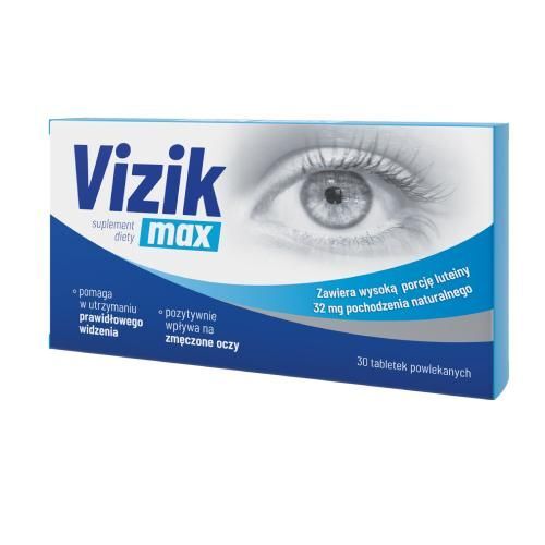 OpisVizik Max to suplement diety zawieraj膮cy ekstrakt z kwiat贸w aksamitki wzniesionej, b臋d膮cy 藕r贸d艂em luteiny i zeaksantyny, a tak偶e witamin (C, E, A, B6, B12, B2) i minera艂贸w (cynk, selen). Sk艂adniki tego preparatu wspieraj膮 prawid艂owe widzenie (witamina A, ryboflawina, cynk) oraz chroni膮 kom贸rki przed szkodliwym dzia艂aniem wolnych rodnik贸w (witamina C, E, ryboflawina, cynk, selen).