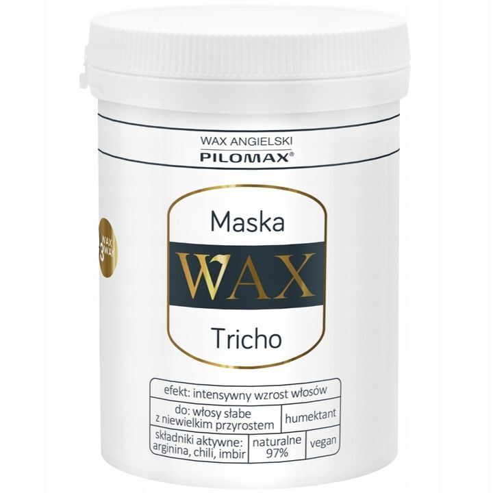 OpisMaska WAX Tricho, stworzona przez Laboratorium Pilomax, została zaprojektowana, aby wspomagać szybszy wzrost włosów i stymulować pojawianie się nowych. Produkt aktywuje cebulki włosowe oraz minimalizuje wypadanie starszych pasm. Szczególnie polecana dla włosów osłabionych oraz o niskiej porowatości.