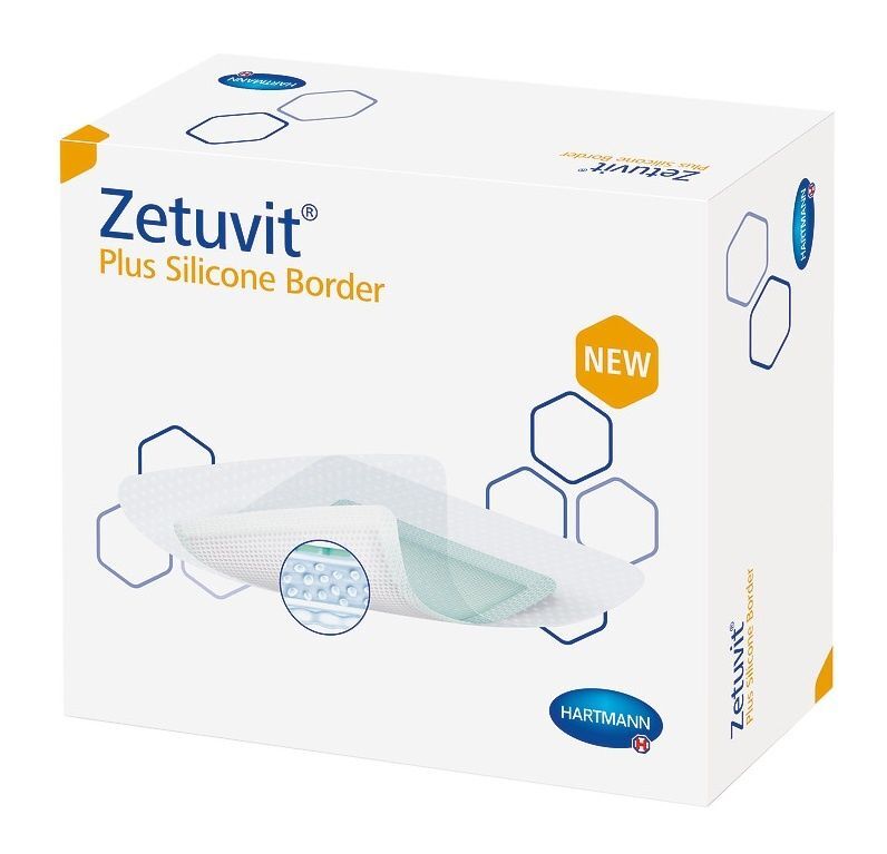OpisZetuvit Plus Silicone Border to samoprzylepny, wysokoch艂onny opatrunek medyczny z silikonow膮 warstw膮 kontaktow膮, idealny do leczenia s膮cz膮cych si臋 ran, zar贸wno ostrych, jak i przewlek艂ych. Jest skuteczny przy umiarkowanych i obfitych wysi臋kach. Silikonowa warstwa umo偶liwia 艂atw膮 aplikacj臋 i bezbolesne usuwanie. Opatrunek zawiera ch艂onny wk艂ad, kt贸ry absorbuje wysi臋k i zatrzymuje go wewn膮trz, a pod艂o偶e zabezpiecza przed przenikaniem bakterii i wody, nawet podczas k膮pieli.