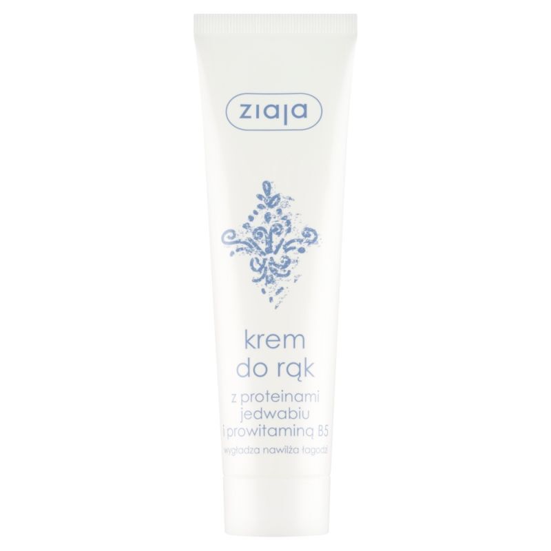 Ziaja z dodatkiem protein jedwabiu i prowitaminy B5 intensywnie dba o sk贸r臋 d艂oni, zapewniaj膮c jej g艂adko艣膰, odpowiednie nawil偶enie oraz ukojenie.