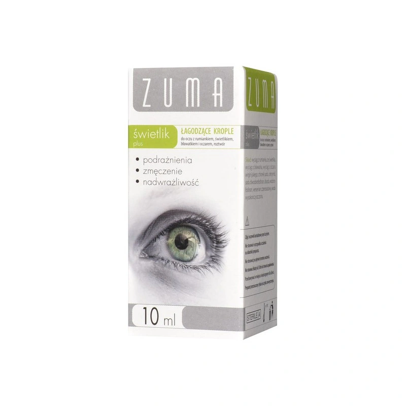 Spos贸b u偶ycia- Krople do oczu ZUMA 艢wietlik plus nale偶y stosowa膰 tylko zewn臋trznie, miejscowo do worka spoj贸wkowego.